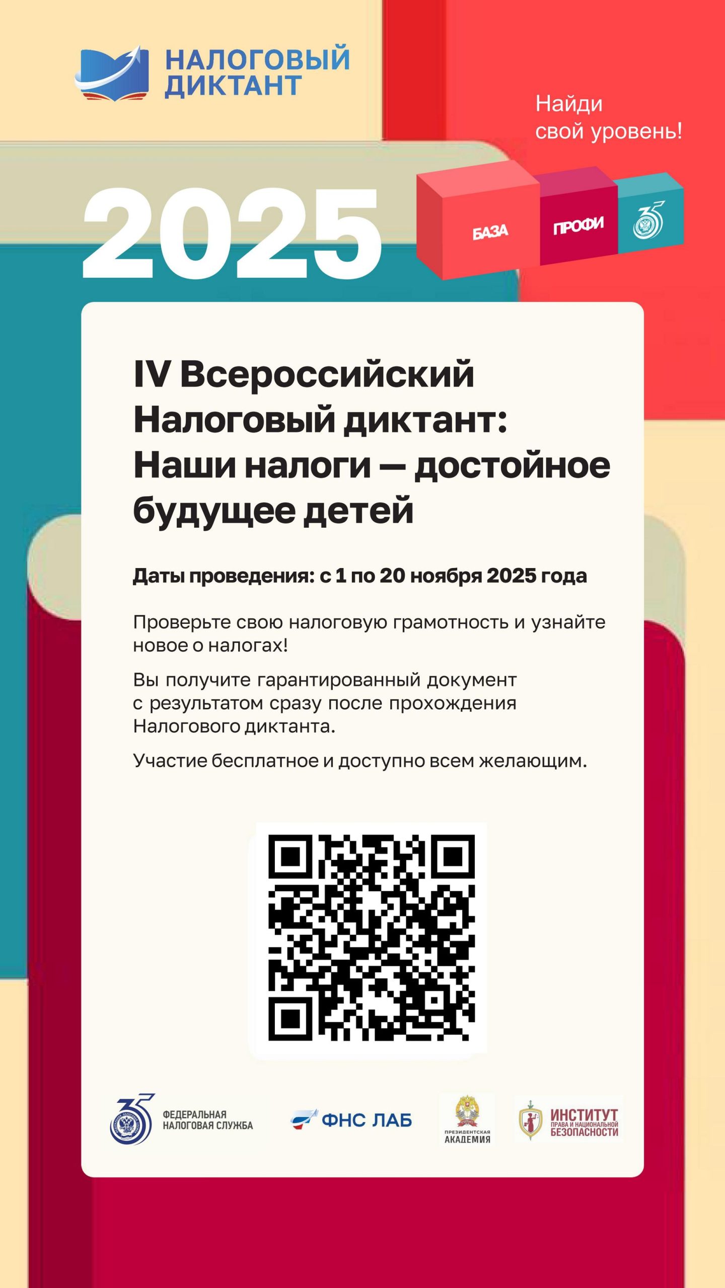 IV Всероссийский Налоговый диктант: Наши налоги — достойное будущее детей